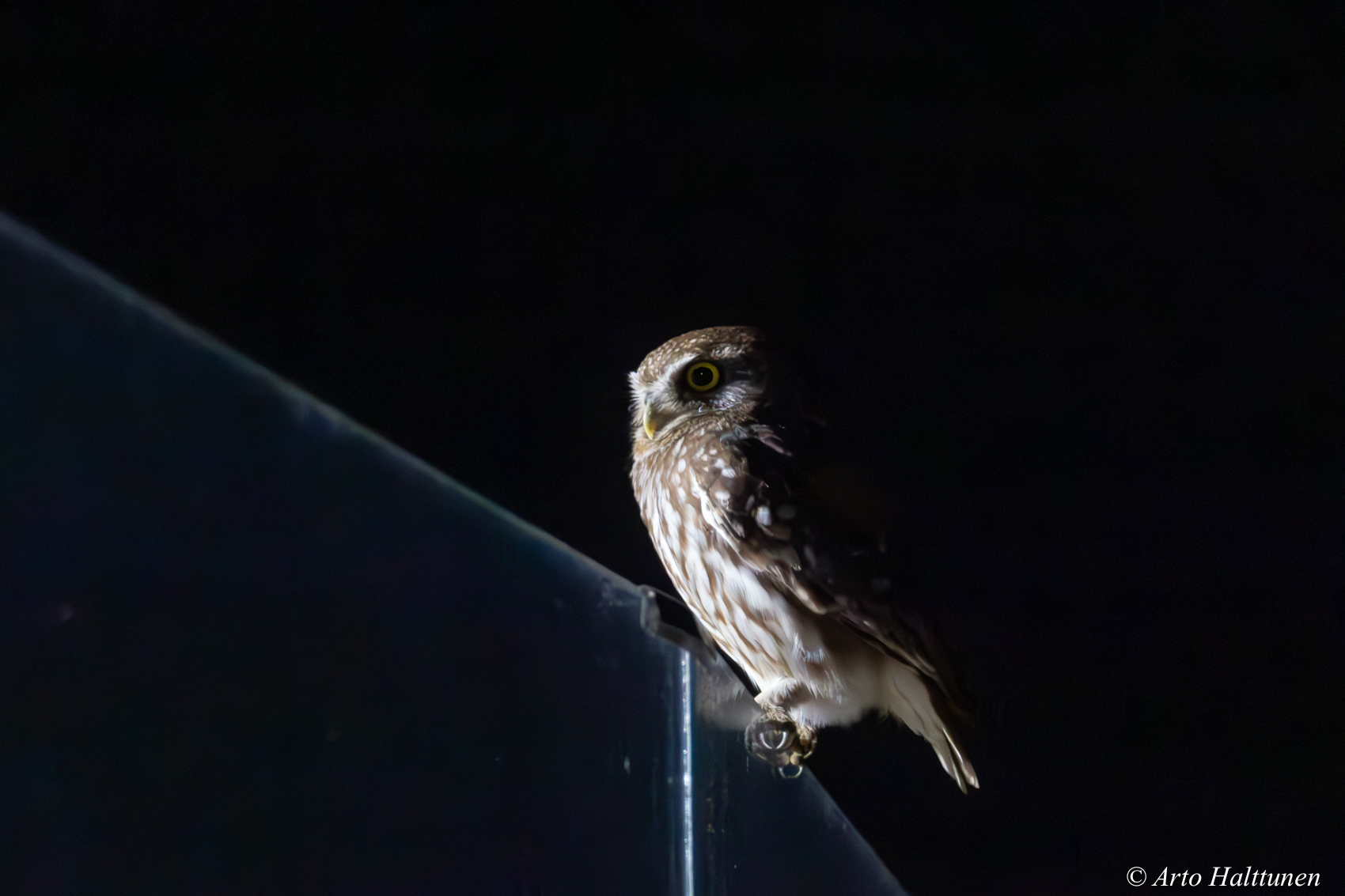 Minervanpöllö 2. Tämä lintu Villa Tizra Hotellin terassin reunalla.