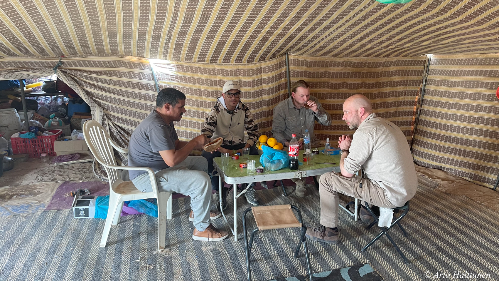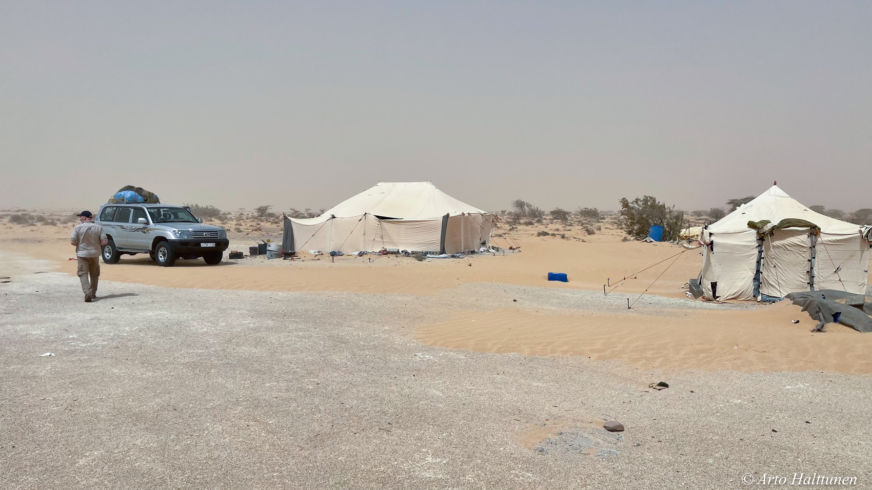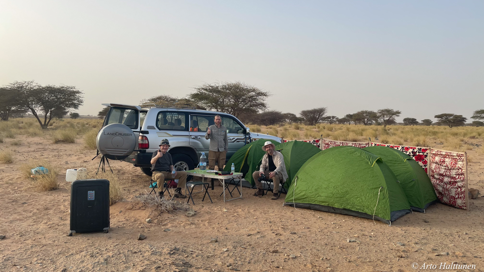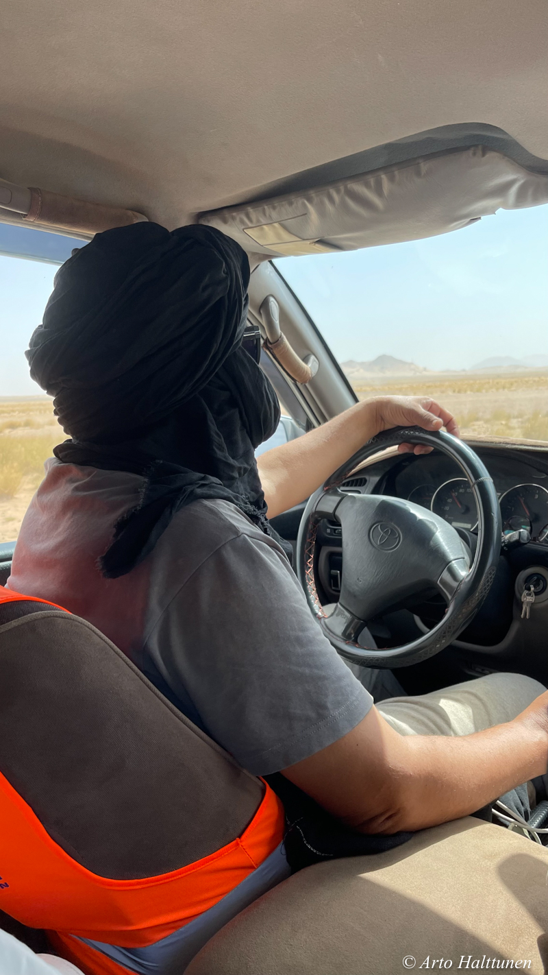 Sää oli koko reissun ajan todella hieno aavikkoretkeilyyn. Toinen yö aavikolla oli turhan kuuma telttamajoitukseen, mutta siitäkin selvittiin.