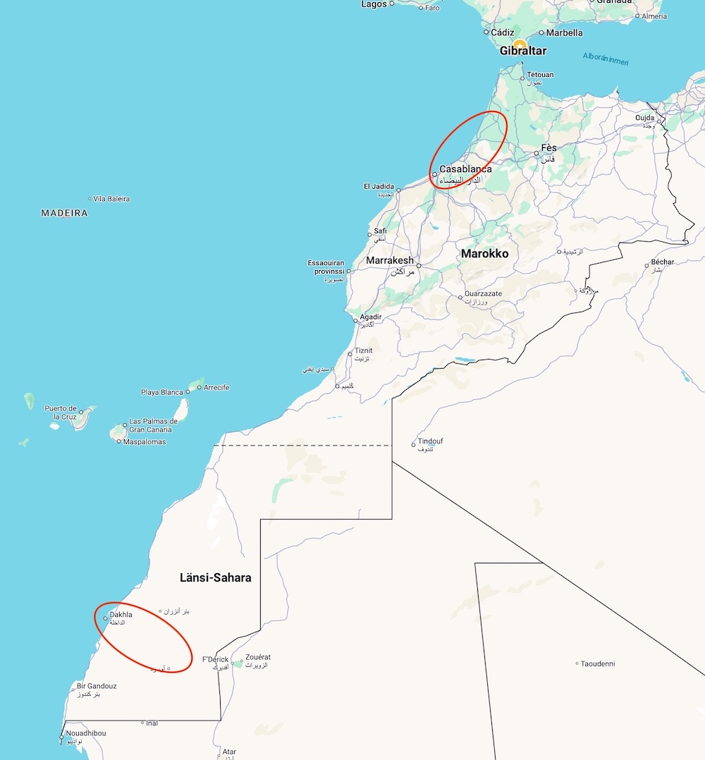 Tämä kohde on ollut suunnitelmissa jo muutaman vuoden. Nyt tarjoutui tilaisuus kun saatiin taas "Aavikkoketut"ryhmä liikkeelle. (Santtu, Jyri ja minä) Tämä nimihän syntyi ryhmälle Kuwaitin 2023 reissulla. Eka yö vietettiin Casablancassa johon lennettiin Pariisin kautta. Sieltä sitten seuraavana aamuna Länsisaharan Dakhlaan. Oppaana meillä oli Länsisaharassa Marokkolainen Braham Mezane. Liikuimme siellä maasturilla jossa oli oppaan lisäksi kuljettaja joka hoiti myös ruokapuolen aavikkoreissulla. Dakhlassa yövyimme kolme yötä hotellissa ja aavikolla teltoissa kaksi yötä. Marokossa liikuimme Casablancasta vuokra-autolla pari viimeistä reissupäivää.